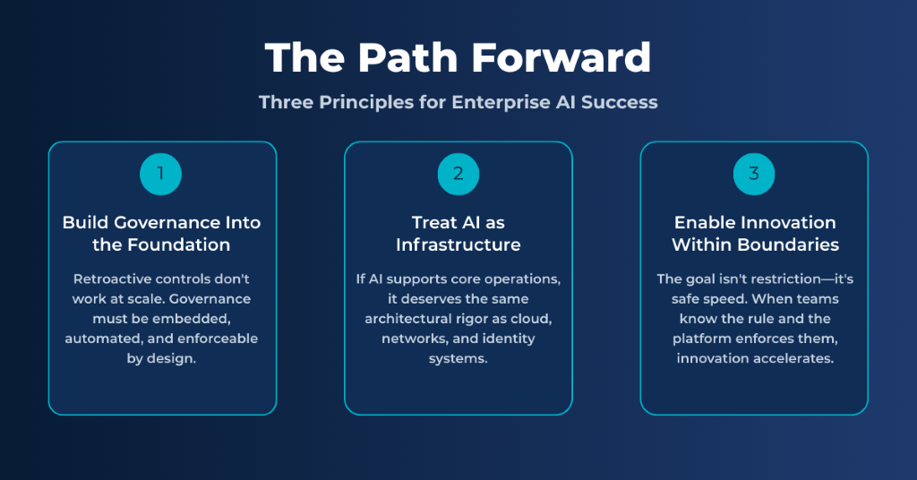 Treat AI as infrastructure. If AI supports core operations, it deserves the same architectural rigor as cloud, networks, and identity systems.