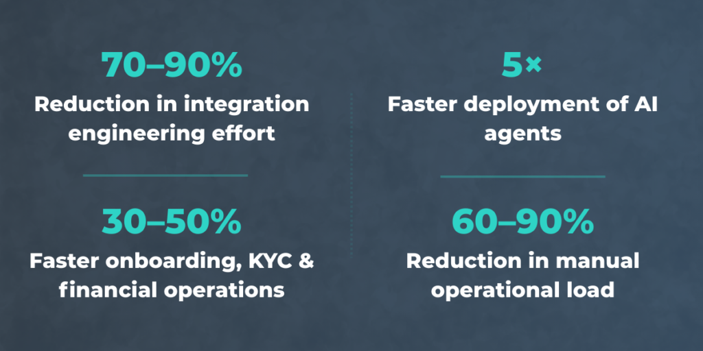 Banks and fintechs are moving from AI pilots to production-scale deployment. The organizations that solve the integration layer first will deploy agents faster, automate more completely, and capture disproportionate value.
